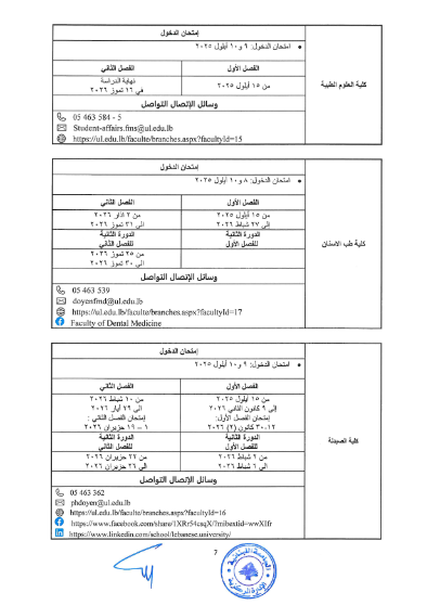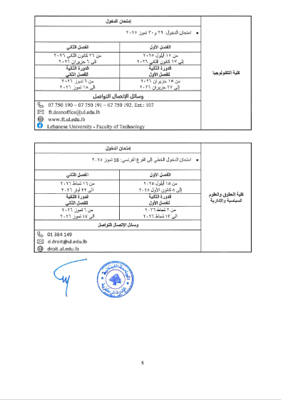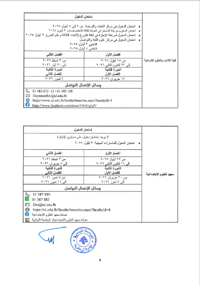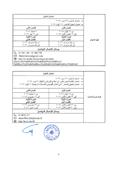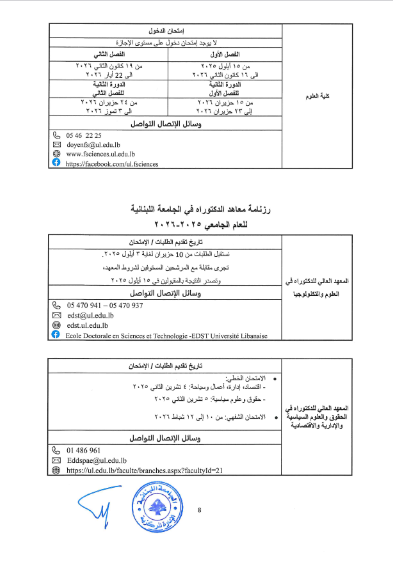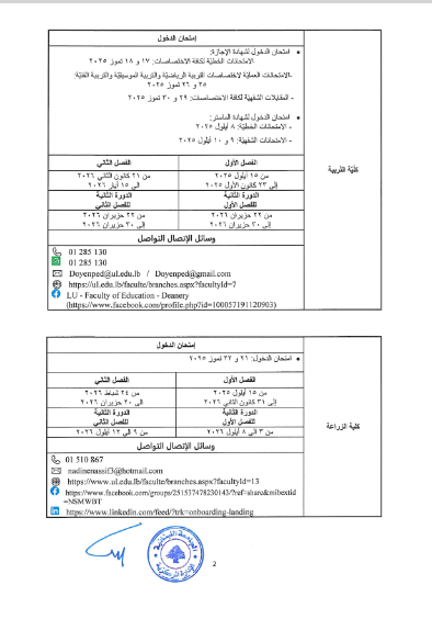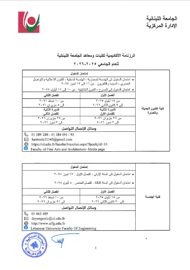 نشرت الجامعة اللبنانية الرزنامة الاكاديمية لكليات ومعاهد الجامعة للعام 2025- 2026.